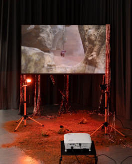In Shifting Grounds a video installation revisits NASA’s 1997 educational film Destination: Mars, which imagined a fictional Mars mission taking place from 2018 to 2020. Told through the astronauts’ personal logs, the narrative reflects hopes of transforming the red planet into a future home.